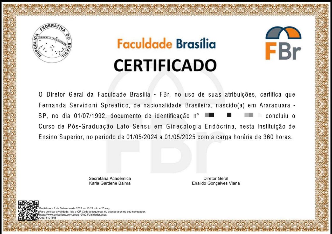 Sou médica formada pela PUC-Campinas, onde também concluí minha Residência Médica em Ginecologia e Obstetrícia. Buscando formação sólida e constante aprimoramento, realizei pós-graduação em Endoscopia Ginecológica e Cirurgia Minimamente Invasiva pela Santa Casa de São Paulo, além de pós-graduação em Endocrinologia Ginecológica pela Faculdade de Brasília.